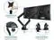 FULLY ADJUSTABLE: Two monitor stand arms can tilt up and down 90 degrees, swivel left and right 360 degrees, and raise/lower a total of 17.5 inches. Turn hex bolt on top of mechanical springs to set the counterbalance tension and hold screens in place.