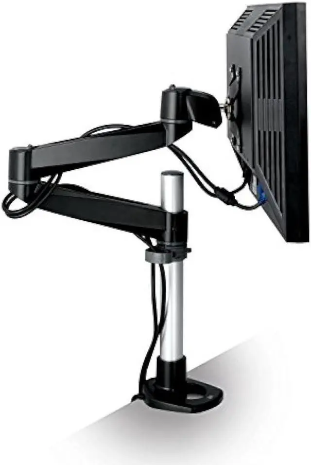 Provides 7 1/2 in of height adjustability and extends 19 1/2 in from the base Clamp mount fits up to 4 1/4 in thick; grommet mount fits up to 2 1/4 in thick Weight capacity of 30 lbs.