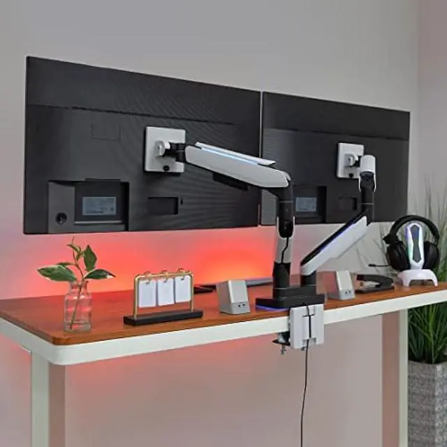 RGB LIGHTING EFFECTS: To create the perfect gaming set-up, we have integrated USB powered RGB lights into the arm and the base - the control button on the base of this monitor mount for ultrawide screens makes switching between 20 different colors and effects easy.