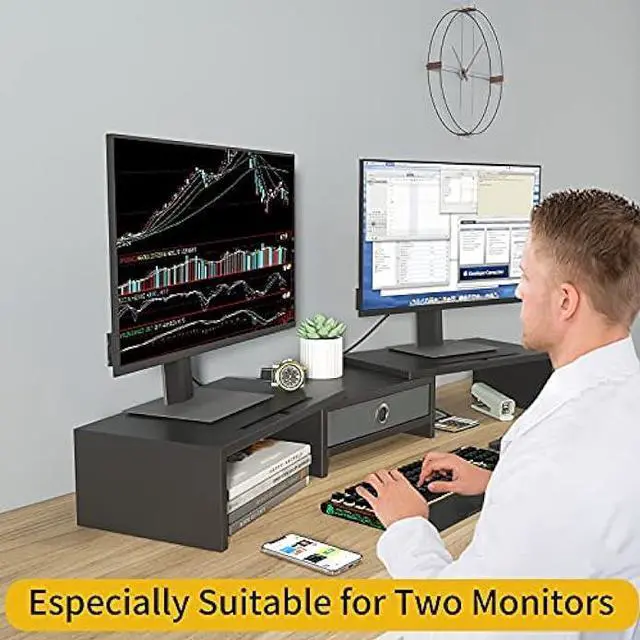 Monitor Stand Riser for 2 MonitorsThe computer stand can accommodate 2-3 monitors. This is an ideal choice when you need multiple computers to work together. And it works on both laptops and desktops.