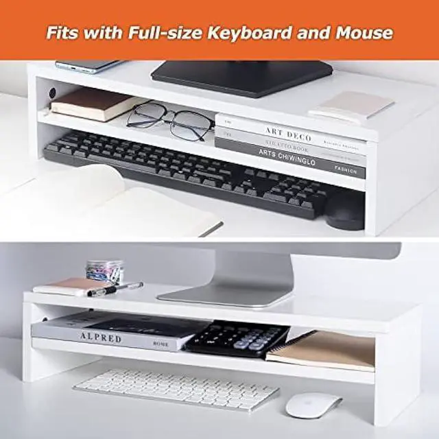 SPECIFICATIONS OF MONITOR STAND - The larger length of 21.7 inches allows you to have more storage space. 0.6 inch thickness board is stable in structure, wear-resistan.