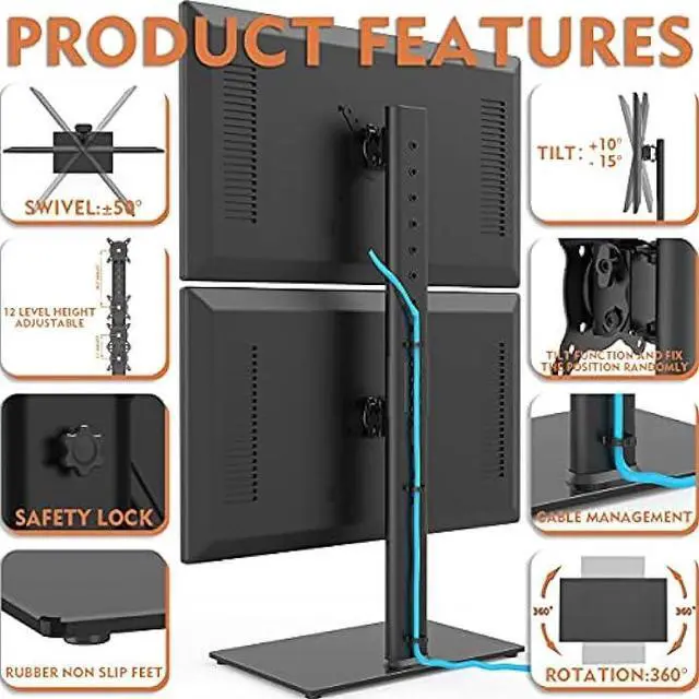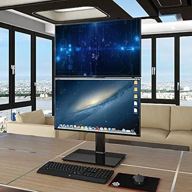 Dual Monitor Stand - Vertical Stack Screen Free-Standing Monitor Riser Fits Two 13 to 34 Inch Screen with Swivel, Tilt, Height Adjustable, Holds One (1) Screen Up to 44Lbs