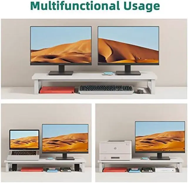 Multi-Purpose StandMonitor stand riser provides a nice workspace, it can be used as a computer monitor stand, monitor riser stand, printer stand, laptop stand, tv riser stand etc. Desktop organzier shelf offer extra space to store your keyboard or other accessories under your monitor