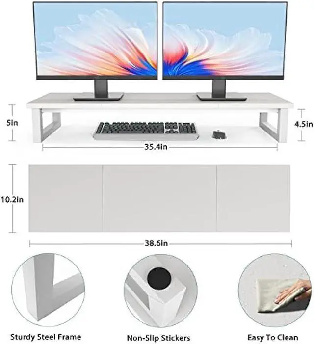 Large Monitor StandThe dimensions of the desktop riser is 38.6L X 10.2 W X 5H. Computer monitor stands for 2 monitors/laptop/TV (can up to 60). This is an ideal choice when you need multiple computers to work together