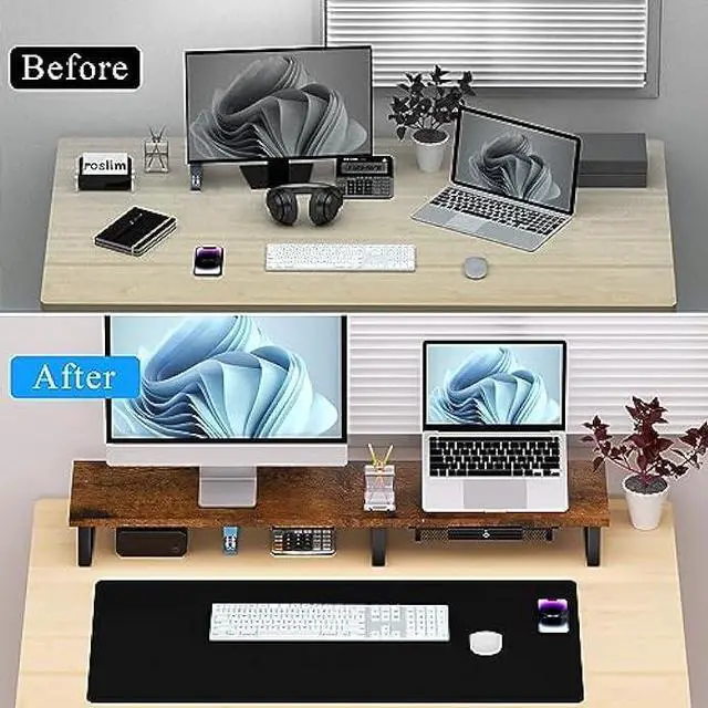 Reliable After-sales Service: Whether you work from home or in an office, this office desk dual monitor riser is an ideal choice. We care about your experience and feedback, if you have any problems please feel free to contact us. And if youre not satisfied with this monitor riser, return it for full no questions asked refund.