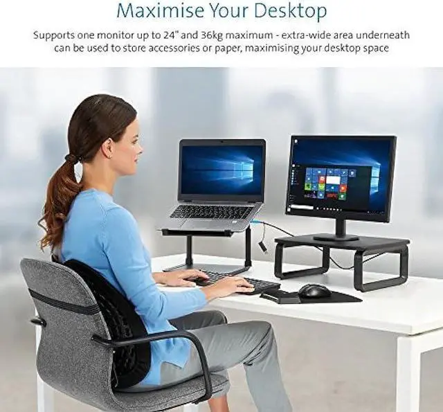 11. 5 clearance between the legs under the stand provides plenty of storage for accessories or papers to optimize desktop space