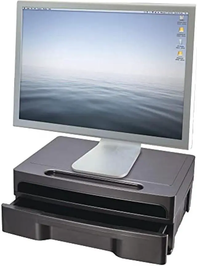 Holds a standard computer monitor at eye level for comfort Stand includes an optional drawer with removable divider for filing needs. Made from durable heavy-weight plastic for years of use. Coordinates with Officemate 2200 Series desk accessories.