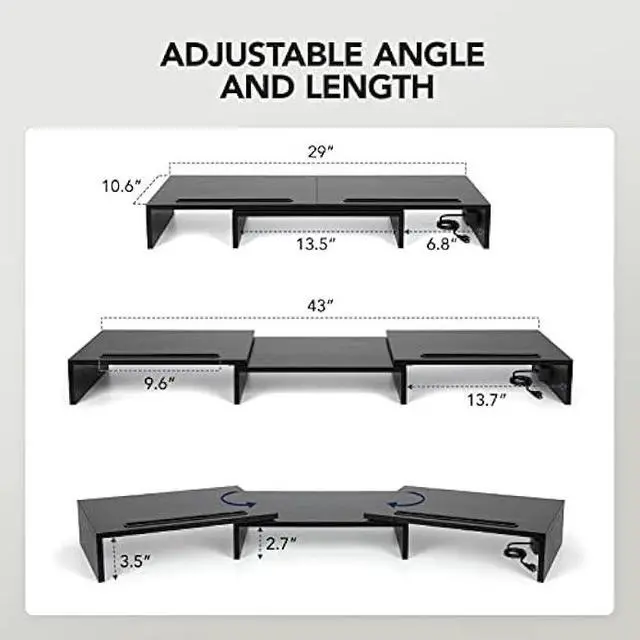 Customize Your Stand: The dual monitor stand riser can support a single 35 monitor or up to three 24 monitors with a weight capacity of up to 48.5 lbs. Strong support brackets and metal pivot joints make angle adjustments easy and provide reliable stability for your workspace.