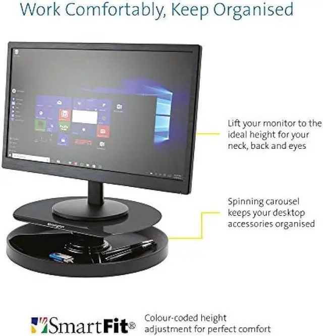 Stand positions monitor in line with your eyes to help reduce eye and neck strain