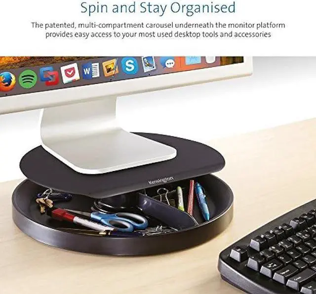 Patented 360-degree spinning carousel organizes common desktop accessories