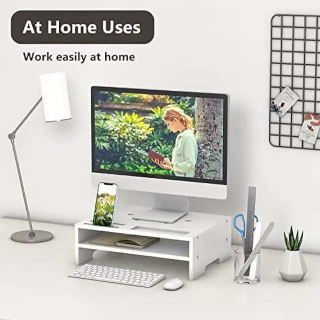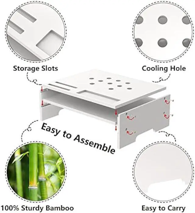 Easy to assemble: package includes hex wrench, you just take 5 minutes will get a monitor stand which makes the desk tidy and organized immediately.