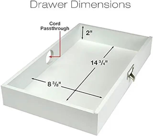 EHANCED STORAGE - The pull-out drawer measure 2 inches tall, 14 3/4 inches wide, and 8 3/8 inches deep. The drawer includes a cutout for power cords, allowing you to connect and charge devices inside.