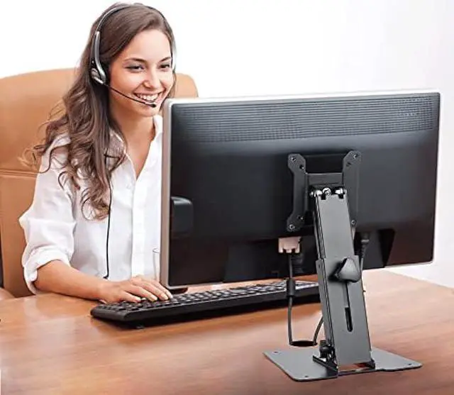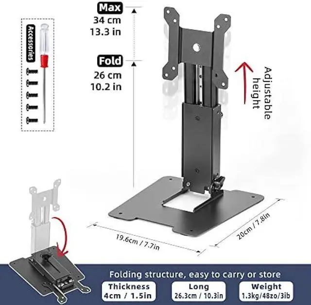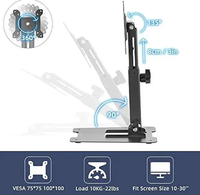 Height Adjustable VESA Monitor Stand - This low profile vesa stand is able to adjust height from 7 to 11 inch by locking rotary knob, can support 10 to 28 inch screens.
