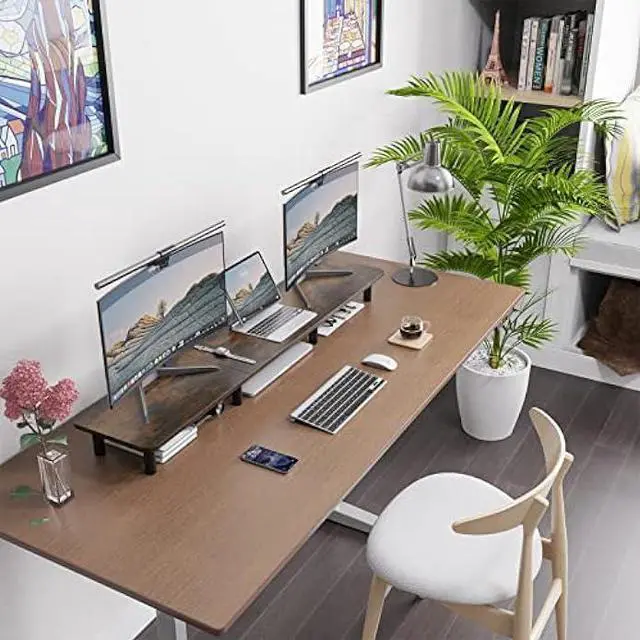 MULTI-USE&ADJUSTABILITYThe height of the display support can be adjusted through the metal support frame (range: 3.2 ''-4''). This monitor riser could help you form a comfortable posture. This stand can also place other items, such as iPad, small potted plants, etc.