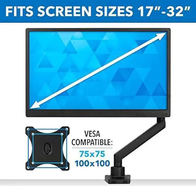 SINGLE MONITOR ARM MOUNT: Fits all brands of 19 20 21 24 27 29 30 32 inch computer screens, with a maximum support weight of 17.6 pounds, using the 75x75mm or 100x100mm VESA square bolt hole pattern found on the back of the monitors. Measure, in millimeters, between bolt holes in pattern if unsure of size.