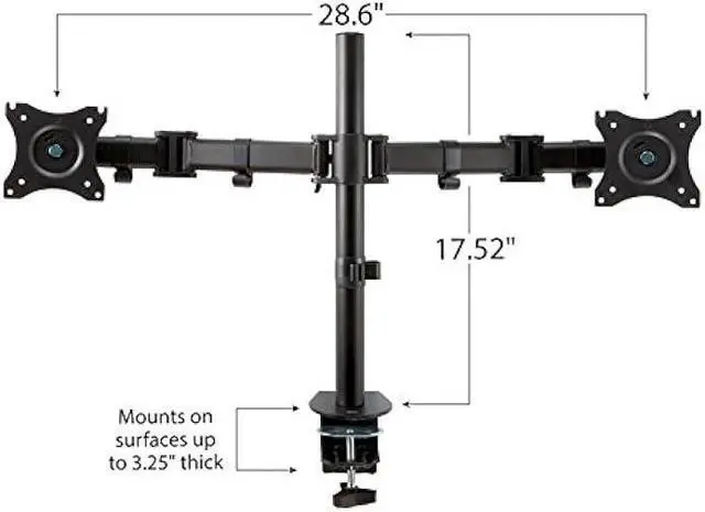 Sturdy steel construction holds two monitors up to 28.5 width and 20 lb each.