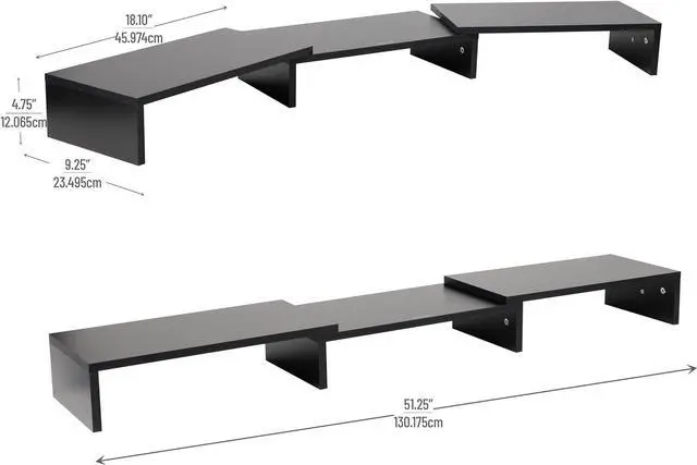 Convenient dimensions: With dimensions of 51.25 inches in length, 9.25 inches in width, and 4.75 inches in height ( 130.18 x 23.50 x 12.07 centimeters), this riser provides ample space for your monitor or monitors while maintaining a compact profile