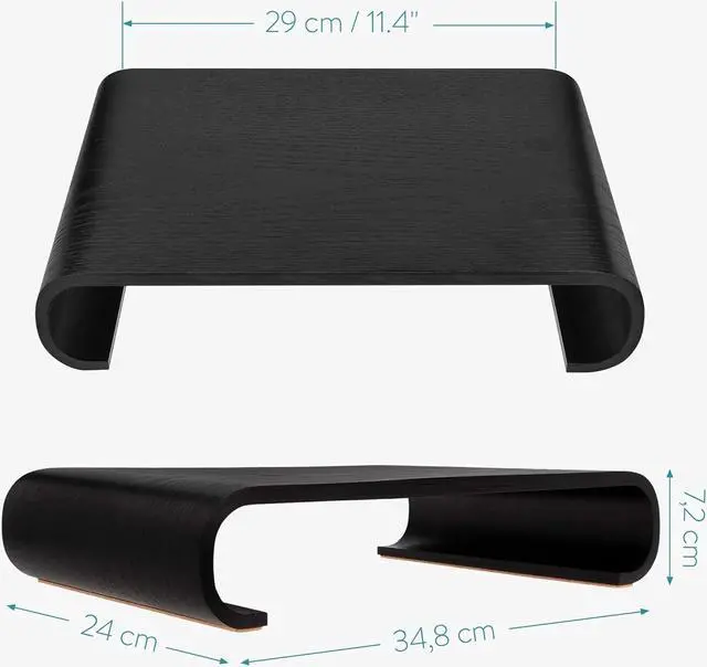 PRODUCT DETAILS: Overall the monitor stand measures 13.7 " x 9.4 " x 2.8 ". Surface for monitor measures ( 11.4 inches). Made of real wood with cork padding.