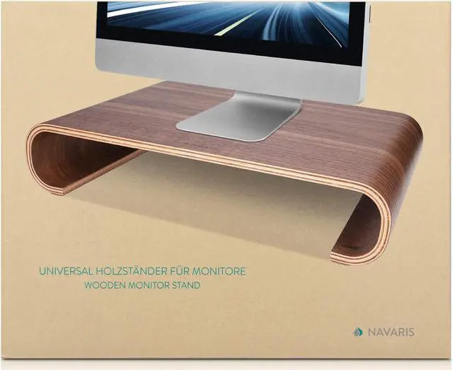STYLISH & FUNCTIONAL STAND: Place your monitor, laptop or notebook securely on the universal wooden platform from Navaris. The laptop holder has cork feet and holds your PC screen firmly without slipping.