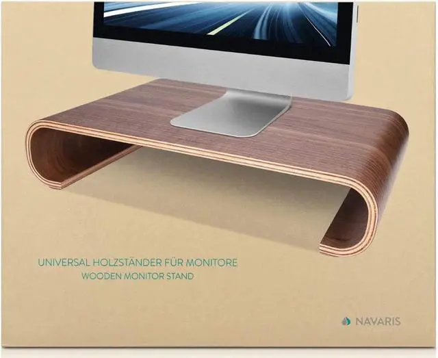 STYLISH & FUNCTIONAL STAND: Place your monitor, laptop or notebook securely on the universal wooden platform from Navaris. The laptop holder has cork feet and holds your PC screen firmly without slipping.