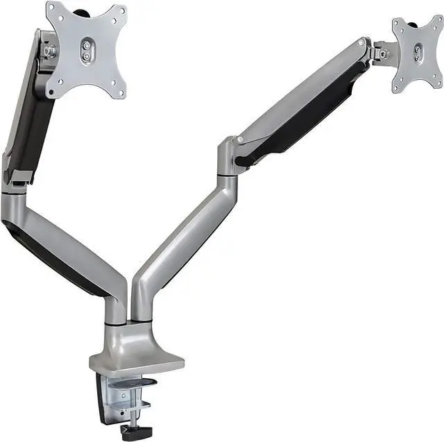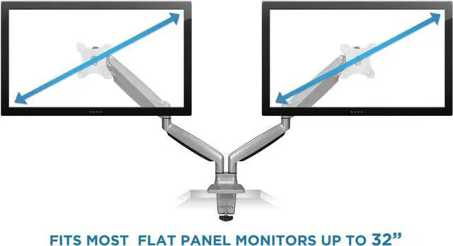 FEATURES: Two monitor stand has counterbalanced, gas spring arms which make adjustments effortless. It has 2 quick-detachable VESA plates for easy mounting and removal of monitors. Comes with integrated cable management and is made out of heavy duty steel and aluminum alloy. Key Product Features