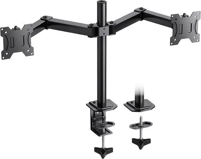 Easy Installation: Double monitor mount with 2 separate mounting choices: " C" clamp and Grommet mount. " C" Clamp mount is the most common for home office use, fits over an an edge thats free of obstructions on both the top and bottom of the desk, fits desktop thickness 0.39 - 3.54. Grommet mount fits desktop thickness 0.39 - 2.76, using the hole of the desk, offers supreme stability, can keeping your screen fixed firmly and safely in place.