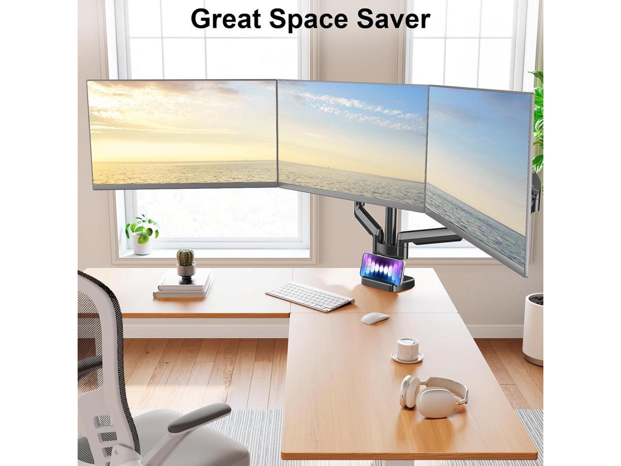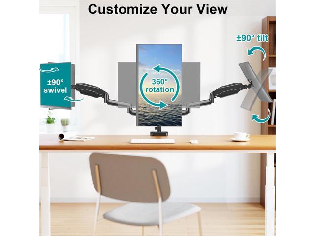 - Full Motion Monitor Desk Mount - This gas spring triple monitor arm enables you to adjust the monitor with 360° rotation, ±90° swivel, and -90°/+90° tilt functions, easily finding optimal view angle. This gas spring monitor arm is free to hovers (adjustable height: 11.4") by adjusting the monitor arm to proper tension.