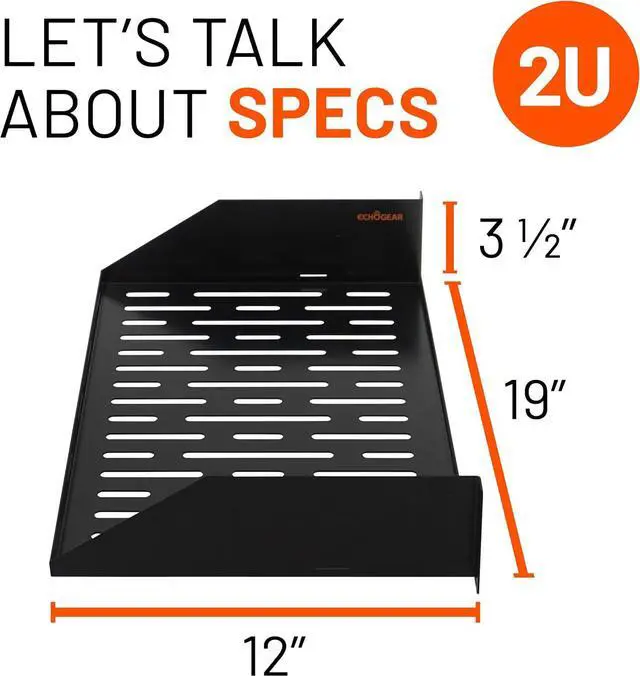Checking in at 19" wide and 12" deep, this 2U shelf is ready to handle a wide range of networking or AV components.