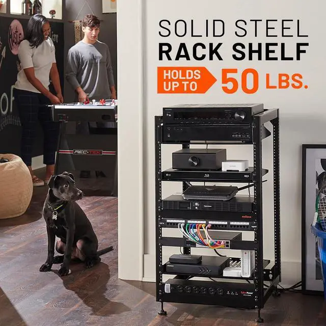 Made from solid steel, this rack shelf can hold up to 50 lbs of gear. The ventilated design also helps your AV components stay nice and cool, maximizing air circulation and preventing overheating.