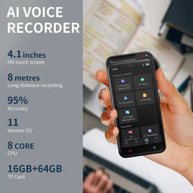 RECORDING DEVICE WITH TRANSLATION FUNCTION: The audio recorder with playback function also has AI translation function, which is super fast and accurate, and supports 134 online and offline 15 multi-language translations. AI shot translation text, support 71 online and offline 12 languages, up to 95% accuracy, with AI image recognition.