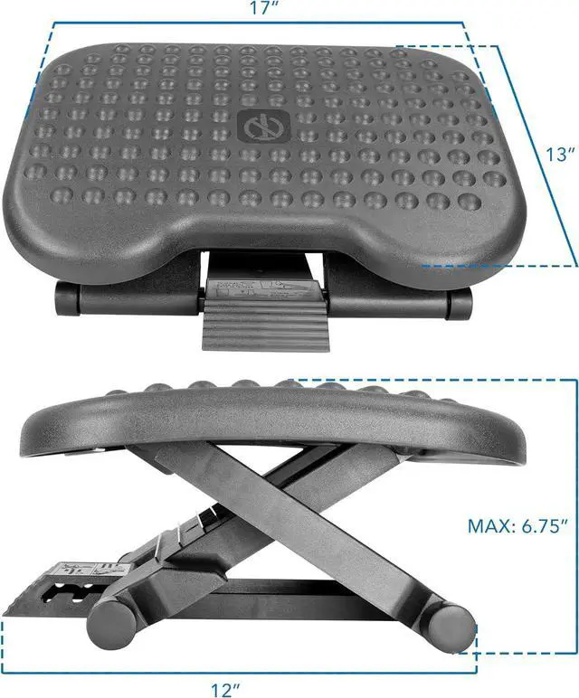 ADJUSTABLE HEIGHT FOOT STOOL - Convenient foot pedal control lets you adjust the footrest without leaving your chair. Offers three levels of height adjustment ( 4.3 in. / 5.5 in. / 6.7 in. ) that lets you stretch your legs for increased circulation.