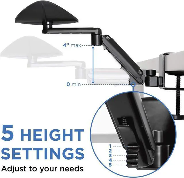 HEIGHT ADJUSTABLE up to 4. This armrest features five preset height settings so you can find the perfect position every time you work. Great for elbow, forearm and wrist support.