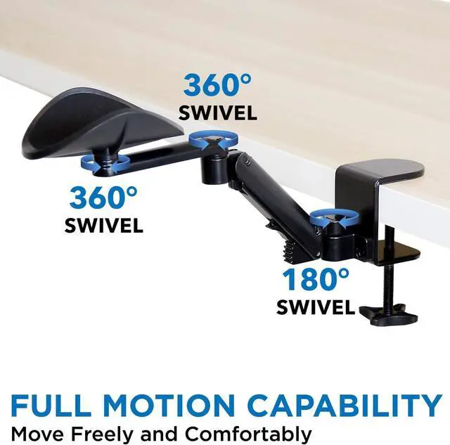FULLY ADJUSTABLE arm allows you to swivel and adjust the height to adapt to your working preferences. This elbow rest freely moves with your arm as you work, creating the perfect support system.