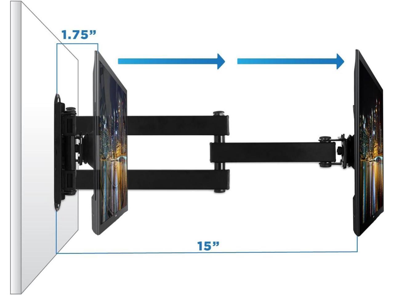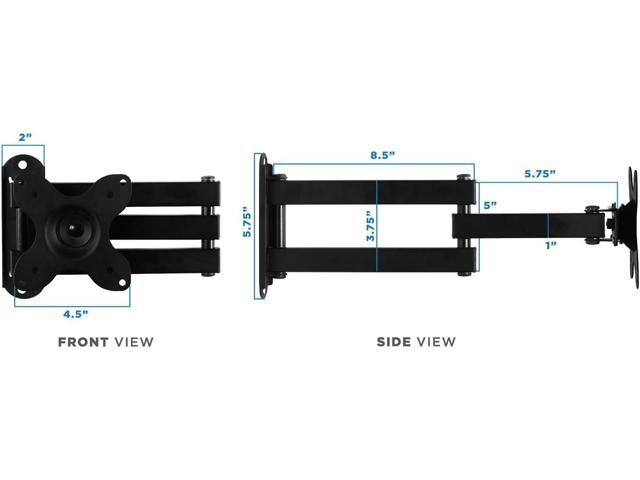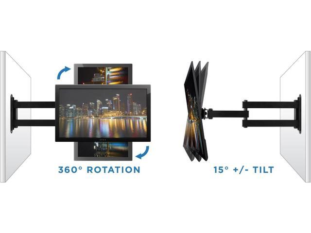 - FEATURES: VESA wall mount arm can fold to bring the screen right up against the wall, or can extend out another 14 inches. The VESA plate head will tilt up or down 15 degrees or rotate 180 degrees to put screen in landscape or portrait orientation, and arm can swivel 180 degrees to left and right. Its sturdy construction holds up to a whopping 40 pounds!