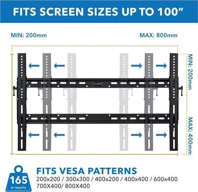 UNIVERSAL COMPATIBILITY: Our slim tilt tv mount is universally compatible, making it the ideal flat wall mount bracket for your 50" to 100" LCD, LED, OLED, or Plasma screen TV. We' ve also included VESA mount compatibility up to 800x400 mm for your computer screens.