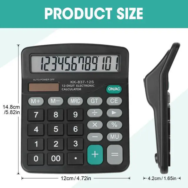 • Large Display: 12 digits desk calculator large display and large numbers makes it easy to read from afar, the calculator will turn itself off after about 8 minutes of being idle
