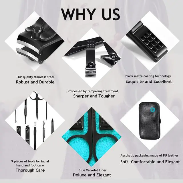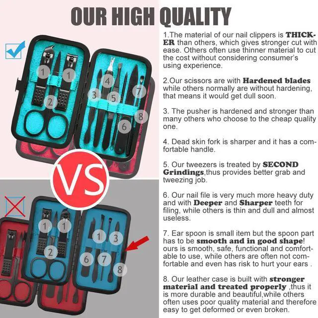 HANTEKAS Manicure and pedicure tools set are made of high quality steel, which is strong and durable, and it is extremely hard and sharp. Designed for lifetime use.