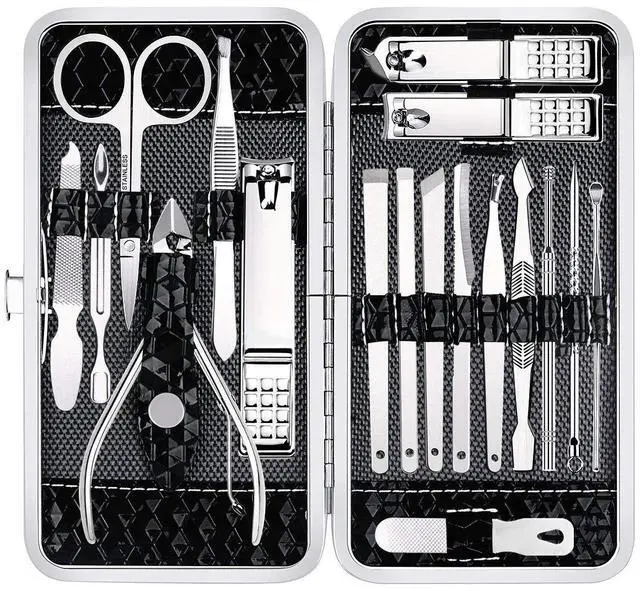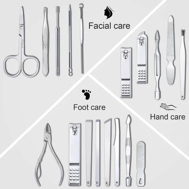 - Manicure Set: Professional Manicure kit contains 18pcs nail, toenail ,facial care multi-purpose tools in a compact case. Multifunctional include hand care,facial care,foot care all in one.
