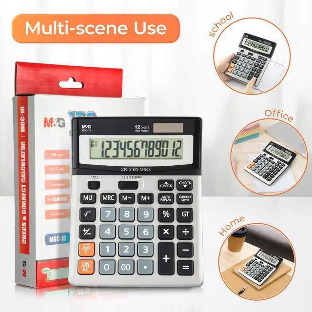 M&G 12 Digit Large LCD Display Desk Calculator with Check & Correct