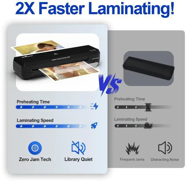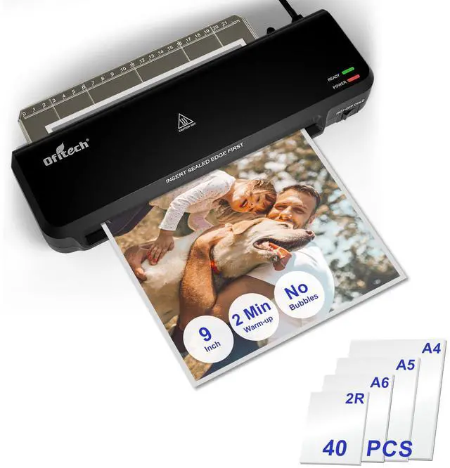 Fast & Ready in 2 MinsThis laminator machine features extra fast 2-minute heat up time and 11-inch per minute (280mm/min) faster laminating speed, make your laminating work more efficient. laminator machine also comes with 40 pieces of 6 mil laminating sheets (10 for A4 size, 10 for A5 size, 10 for A6 size, 10 for Card Size) for hot lamination, meet your various usage needs
