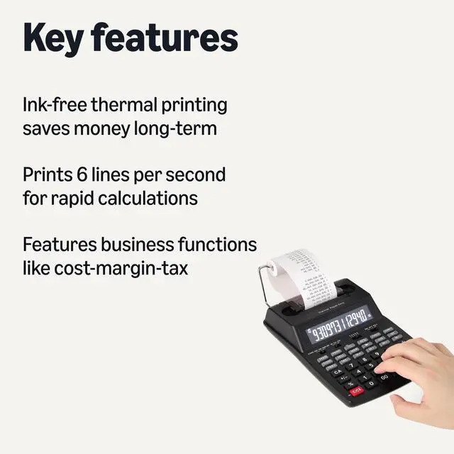 RAPID PERFORMANCE: Lightning-fast printing speed of 6 lines per second boosts efficiency in busy offices, retail environments, or quick calculations at home
