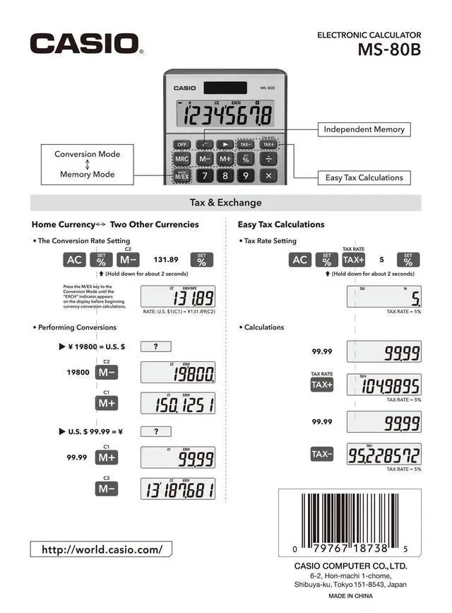 The MS-80B Portable Desktop is one of the top selling calculators in the USA. This easy to use calculator takes up little space on your desktop and fits easily into your briefcase or desk drawer. Easy to read large 8 digit display.