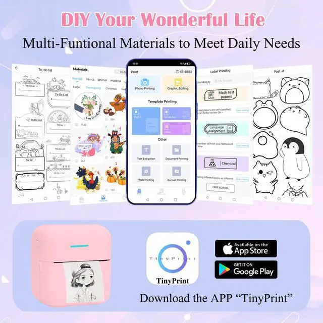 | Mini Printer | stylish white | stylish pink | pristine white | pristine pink | cute blue | cute pink |