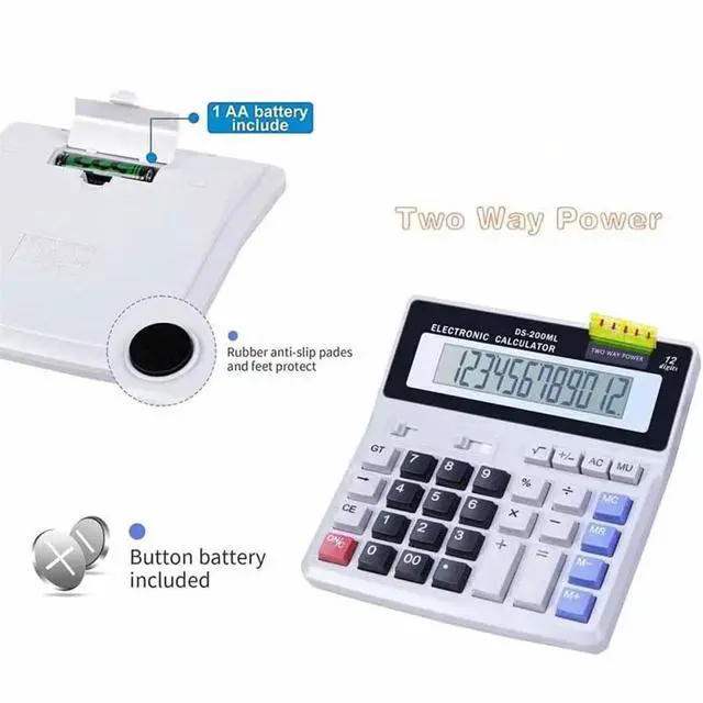 Office Calculators Desktop, 12-Digit Dual Power Cute Calculator with Large LCD Display Big Button for Office Home and School
