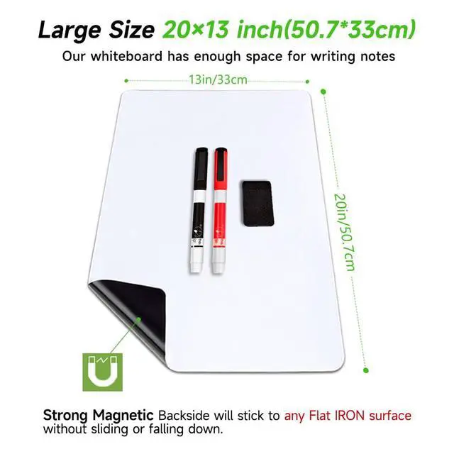 - Large 20x13 " whiteboard sheet offers ample space for all your notes and plans.