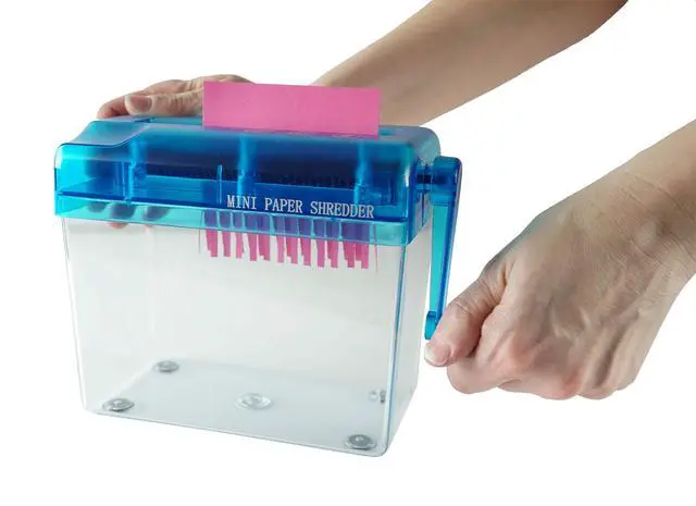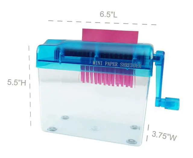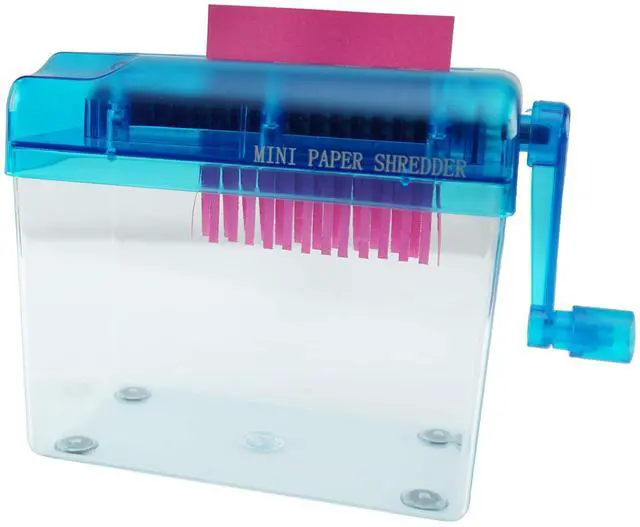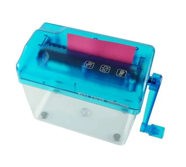 This hand-operated paper shredder is a great tool for shredding paper at home, at work, or in the classroom. Its made with durable plastic and is attached to a transparent dust box to help reduce messes. Cut and shred paper documents with ease. You dont even need to plug it in! Simply crank it with your hand to shred any paper in seconds. This shredder is an essential tool to keep information secure before you throw your documents in the garbage or recycling bin. Its important to keep your records private, and disposal of unshredded paperwork can lead to a security breach. If you want to keep your information top-secret, this shredder is a great place to start! Instructors love this shredder in their classrooms, especially for crafting and other activities where paper is used. It can function as a confetti maker and makes long paper strips perfect for crafting. Because its entirely manual, its safer for kids so that no accidents happen with their little fingers. It is also fun for young students to use! Purchase this manual paper shredder for your classroom today. Whether youre cutting thin printer paper or thicker cardstock, this is one of the best portable shredders around. It can handle paper of any thickness. Because of its small size, you may need to fold the paper in half to fit it into the opening, but the machine will still be able to shred it in no time. This mini personal shredder is also a great little machine to keep at your desk, whether you work in an office or from home. Any document can be shredded with ease, and you wont even have to get up from your desk! Its also great if you are regularly changing office spaces because you wont have a heavy electronic shredder to carry around. Its basic yet durable design is perfect for any occupation that requires paperwork. Try one today!
