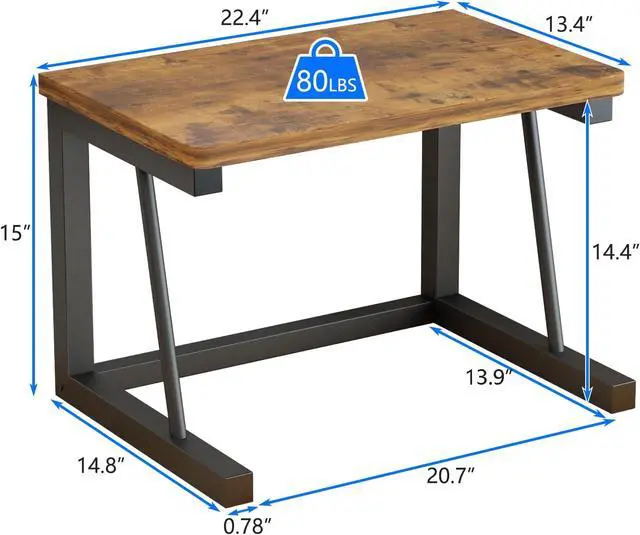 product dimensions: 22.5 " W* 14.8 " D*15" H. Made with high-quality materials and built to last, this printer stand is the perfect addition to any office setting. With a bear capacity of up to 80 lbs, this heavy-duty printer stand ensures that your devices and materials will be safe and secure. Round-edge design on the side to avoid bruise and keep you safe.