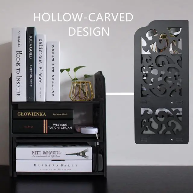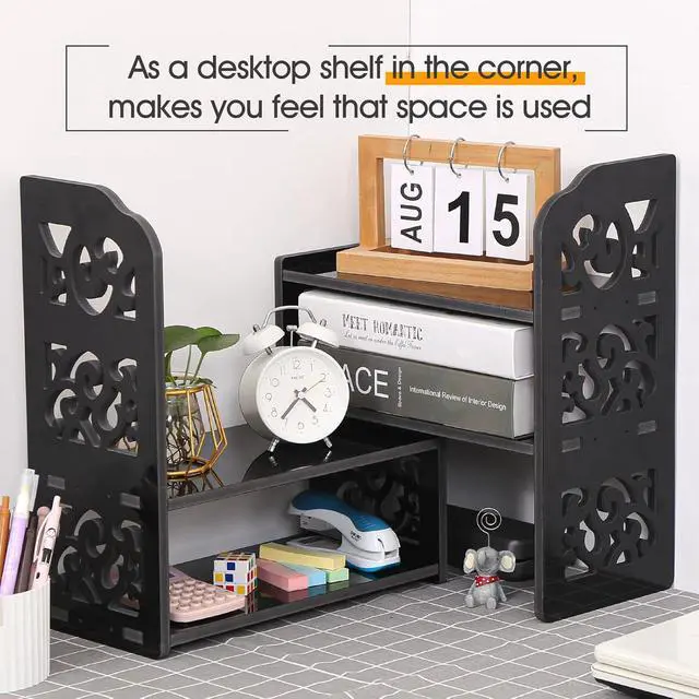 Versatile for Multiple ScenariosWhether it' s your office workstation, study desk, or the limited space in a dorm room, this desktop bookshelf seamlessly fits in anywhere. Its compact design saves space while instantly organizing cluttered documents, books, and stationerycreating an efficient, tidy, and focused environment for you in any setting