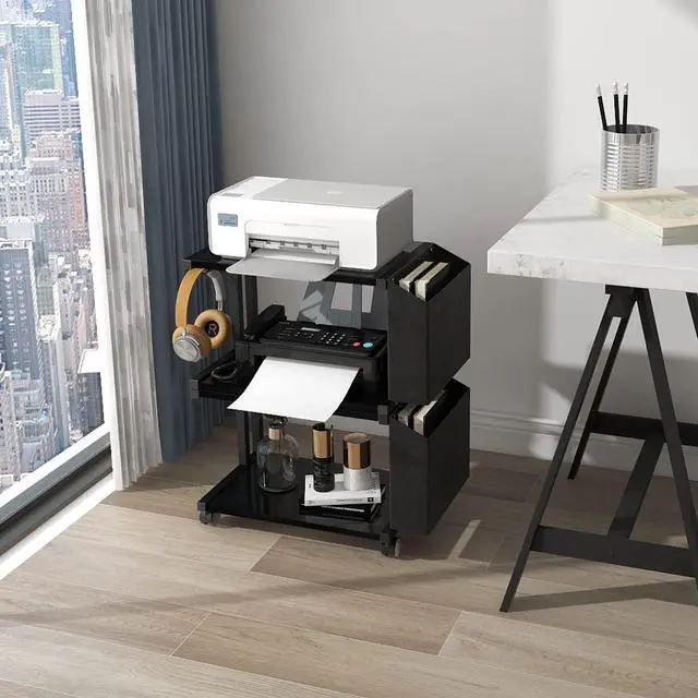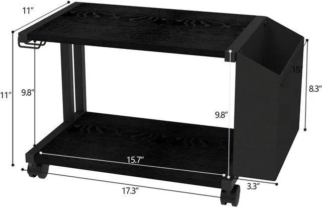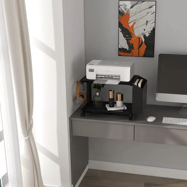 Dimensions: 17.3 ' ' Lx11' ' Wx11' ' H-Ideal size for small 3D printers, fax machines, scanner and other office supplies. Our multifunctional desktop printer shelf can also be used as office organization, dorm essential, book shelf, storage shelf, and so on. It can be used in home, office, dorm, craft room as an ideal organizer and storage