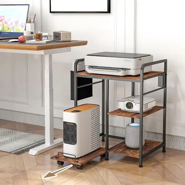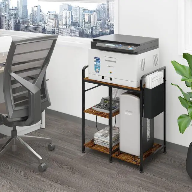 Sturdy and Durable Construction: Each Shelf is Supported by a Robust Steel Tube Frame, Ensuring a Solid and Stable Structure. The Office Printer Stand Exceptional Load Capacity of 100 lbs per Tier Makes it Highly Reliable. Constructed with High-quality Particle Board Featuring a Water- and Wear-Resistant Surface, Combined with a Strong Powder-coated Metal Frame, This Printer Shelf is Built to Last for Years.